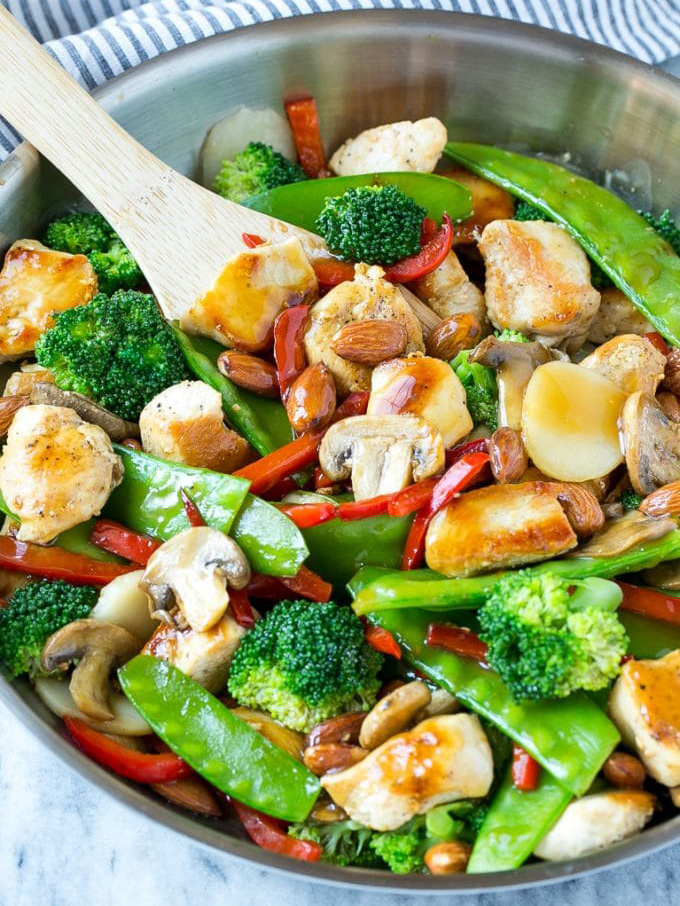 View MoreChicken almond ding is a stir fry full of chicken, veggies and crunchy almonds, all tossed in a savory sauce.